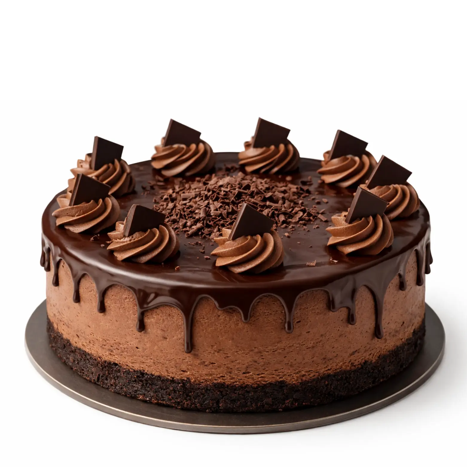 A rich and creamy chocolate cheesecake made with smooth cream cheese and deep chocolate flavor, set on a buttery biscuit crust. This indulgent dessert offers a velvety texture and perfectly balanced sweetness, making it a favorite for chocolate lovers.